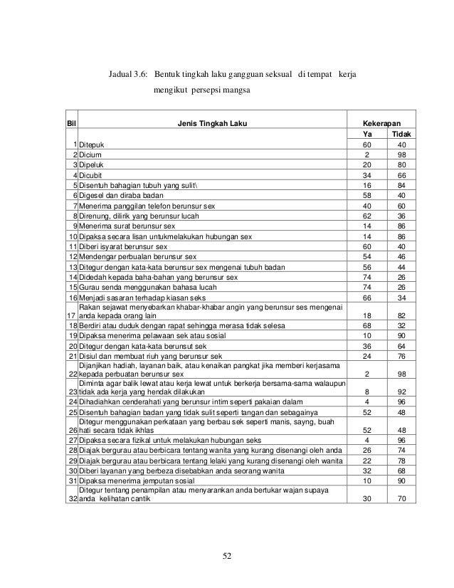 Statistik 257 lelaki menjadi mangsa gangguan seksual from media.ohbulan.com Langkah untuk menangani gangguan seksual di tempat kerjadi malaysia, kod ainalan inenggariskan secara komprehensif. Makalah ini akan cuba membincangkan takrif gangguan seksual dan penggunaan seksyen 20(1) akta perhubungan perusahaan 1967 sebagai remedy untuk penerima atau mangsa dan juga pelaku. Terdapat lima jenis gangguan seksual di tempat kerja iaitu secara lisan, isyarat, visual, psikologi dan fizikal. Kaum wanita harus memastikan kehadiran mereka diketahui oleh orag lain yang boleh dipercayai jika terpaksa bekerja sehingga lewat pemilihan tempat kerja adalah sangat penting. Membimbangkan ekoran daripada pembangunan ekonomi. See more of gangguan seksual di tempat kerja on facebook. Di indonesia, penelitian mengenai pelecehan seksual di tempat kerja saat ini sangatlah sedikit; Kesan gangguan seksual ke atas mangsaperistiwa gangguan seksual bole11 mewujudkan suasana kerja tidak tenteram dan tidak menarik.