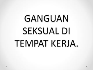 Ganguan seksual merupakan suatu fenomena negatif di tempat kerja yang boleh memberi kesan buruk kepada pekerja yang menjadi mangsa.