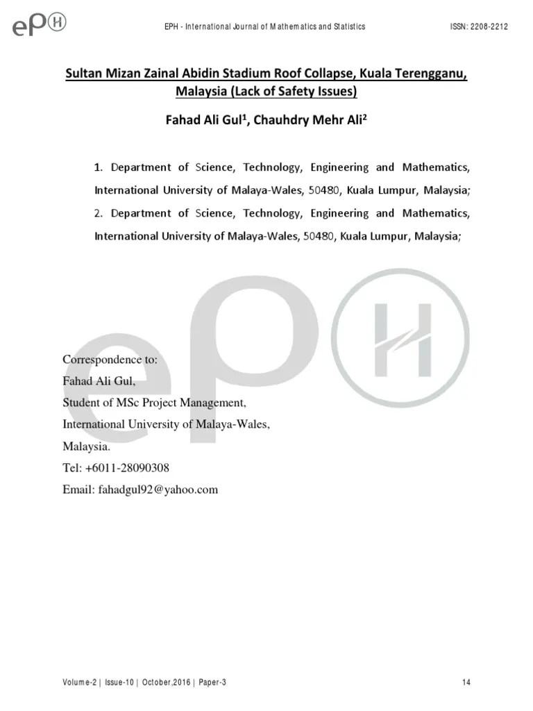 Sultan mizan zainal abidin stadium collapse report. For more information and source, see on this link : Q & a conclusion comment of the case based on ethical code and code of conduct a registered engineer shall at times hold paramount the safety, health and welfare of the public • in this case, they can be considered as neglected the safety of the public. Professional ethics, safety and health (ningen ryoku) course code: Terengganu menteri besar datuk ahmad said said the investigation report …
